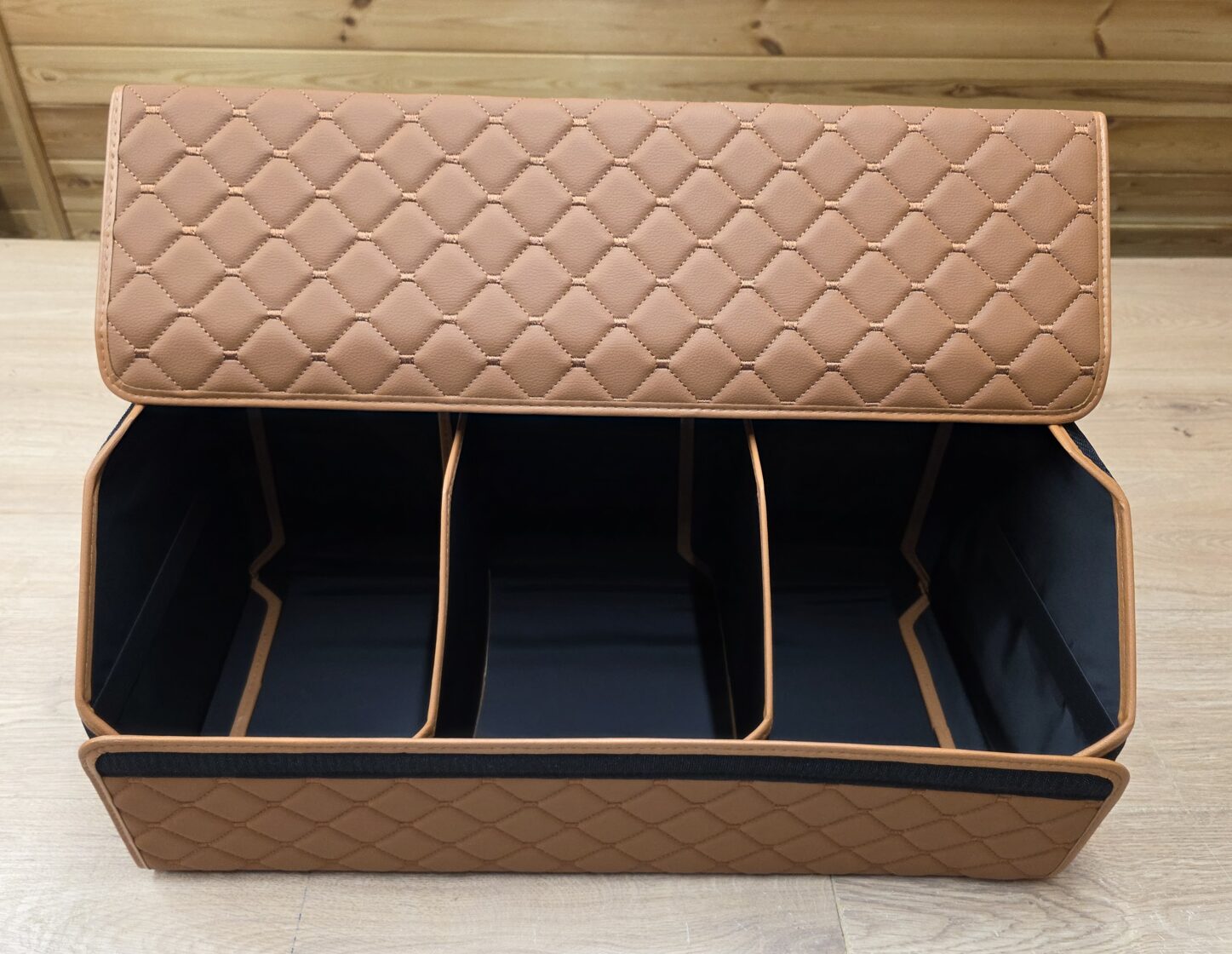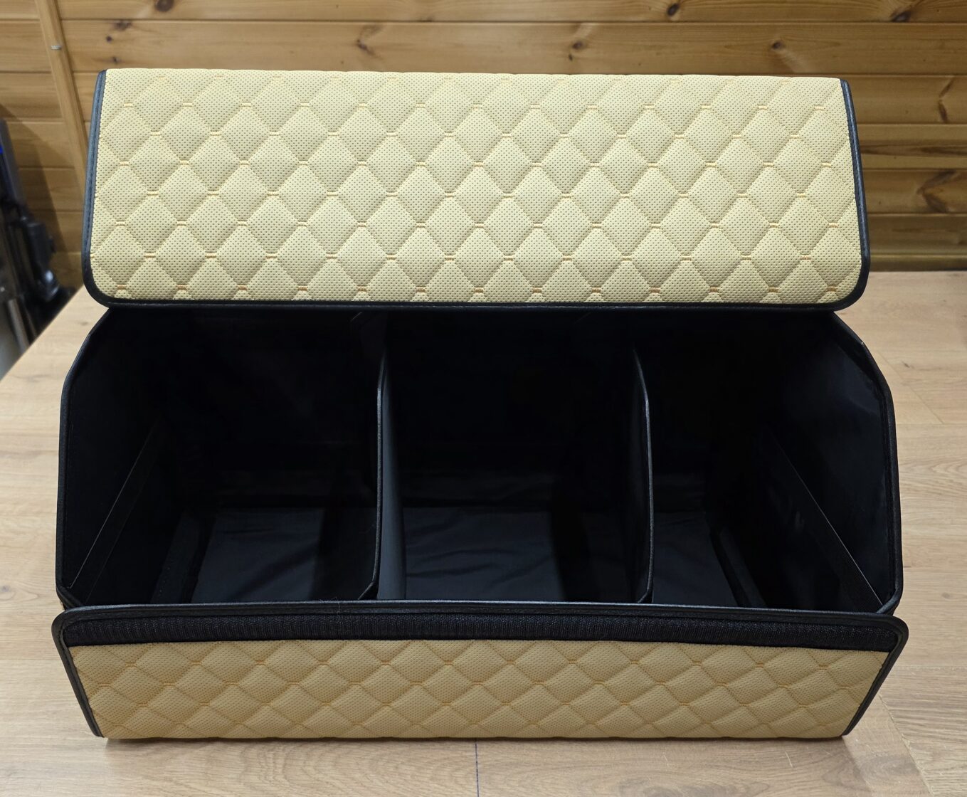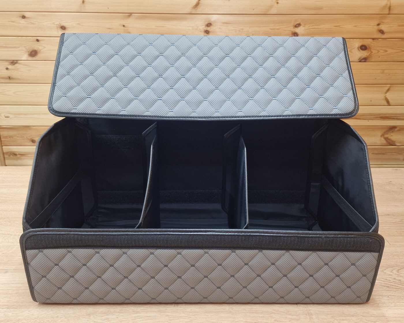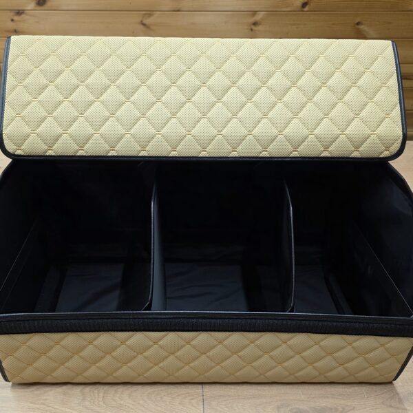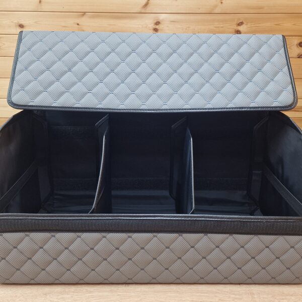 - Organaizera apakšdaļā ir 2 lipekļi kas to tur cieši tur pie bagāžnieka paklāja.